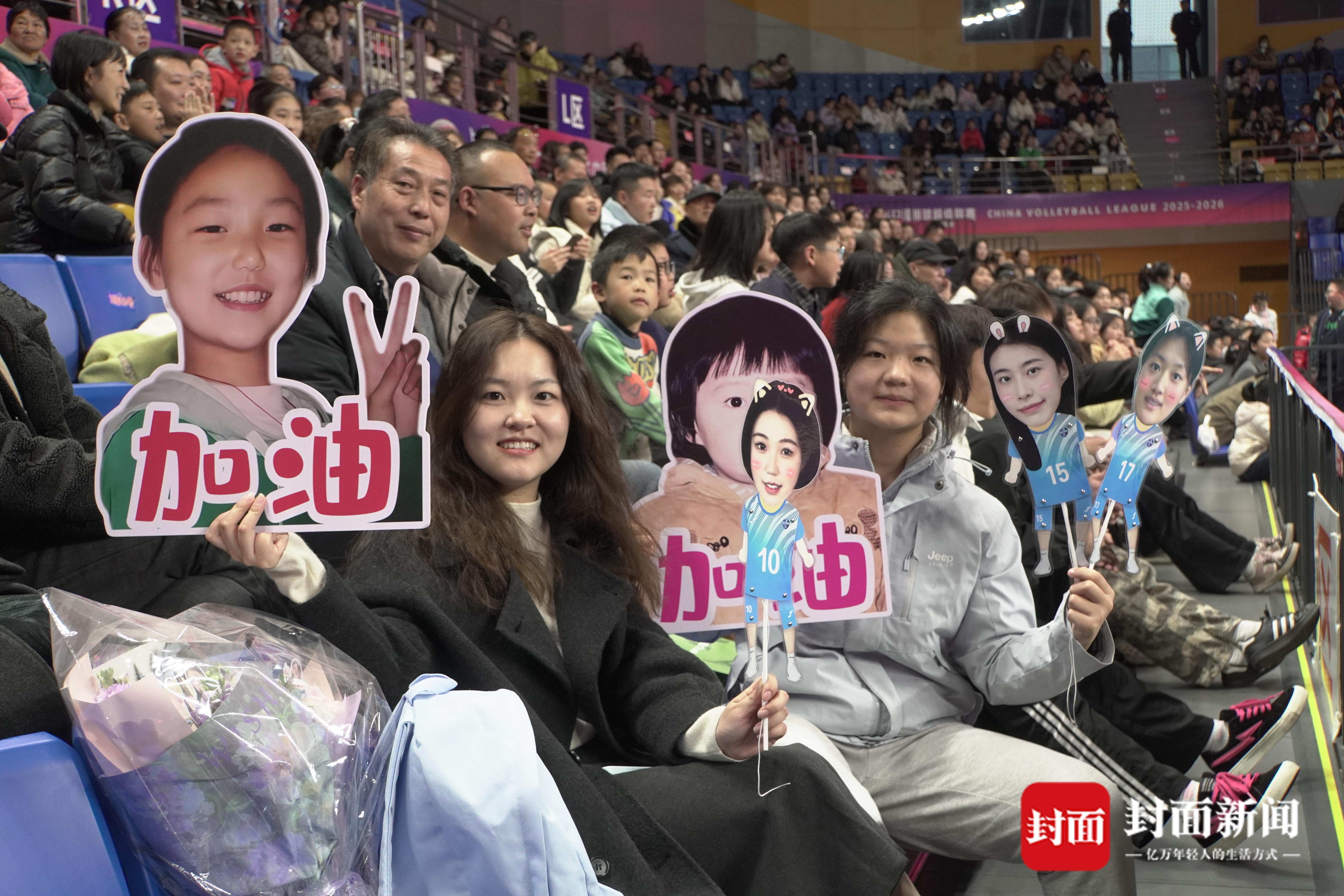 而四川女排的表现也同样牵动着更多来自全川各地的排球迷。从成都和眉山赶来的女球迷马冰清和任雪梅,赛后将鲜花和自制的人偶玩具分送给了四川队的袁果、杨京津和王雨晴,以表达支持。她们向记者表示,最初是因为缪伊雯“入坑”四川女排,但是姑娘们的拼搏精神打动着她们,让她们成为了四川队的“铁粉”。“不过平时她们人真的很好相处,时间长了,就像当朋友一样在追了。”任雪梅向记者如是说。